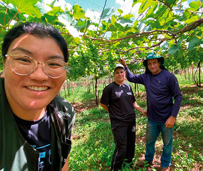 VISÃO ABRANGENTE – No Noroeste do Paraná, a técnica de campo Renata Koyama está feliz com as mudanças em sua vida profissional. Formada em Engenharia Agronômica, ela era professora da Universidade Estadual de Maringá (UEM), mas decidiu dar uma guinada em sua carreira. Neste ano, tornou-se uma das profissionais que levam a ATeG aos fruticultores de Marialva – considerada capital das uvas finas. “Quem atua na universidade dificilmente tem esse contato direto com o produtor. Essa relação direta tem sido enriquecedora”, resume Renata. “Quando você é uma pesquisadora, tende a estudar uma coisa só: apenas um produto, só uma técnica de manejo. Quando se vai para extensão, é preciso ter uma visão global, levar em conta a vida real do produtor, a influência do clima no cultivo e as pragas. Precisa ter um olhar geral. Eu gosto dessa abrangência”, detalha.